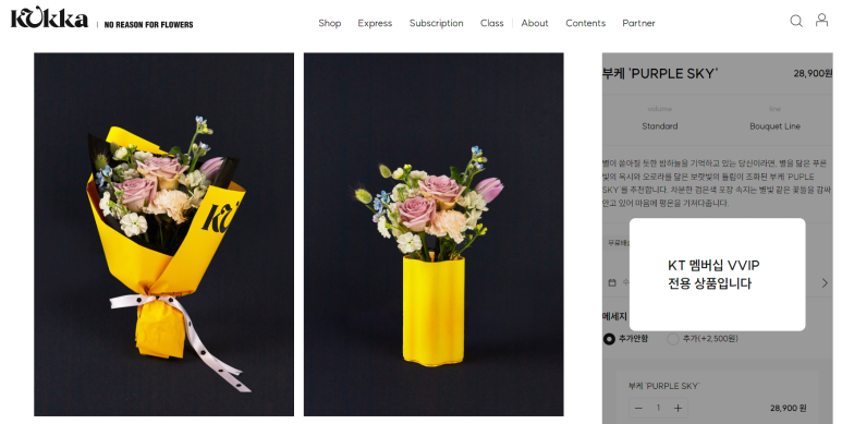 KT 멤버십 VVIP 초이스로 꾸까 꽃다발을 받으려면,