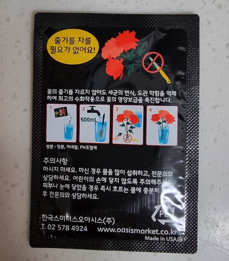 꽃을 더 오래 보관할 수 있는 플라워 푸드 중에 선택하게 되어 있다.