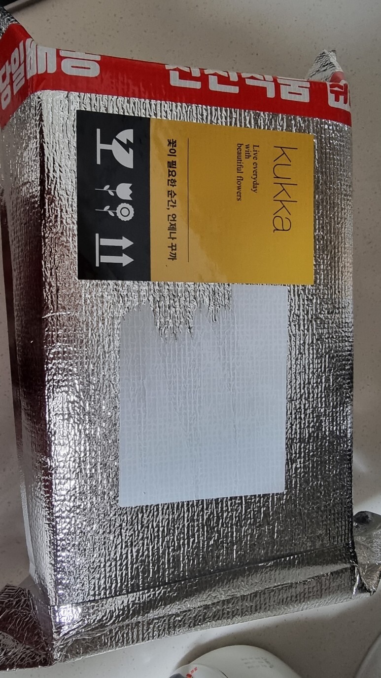 꽃다발을 박스에 담아 택배로 받으면 꽃이 많이 상할 것 같으나,