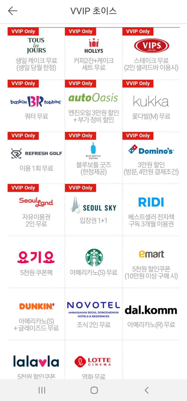 현재 KT 멤버십 VVIP 초이스는 아래와 같다.