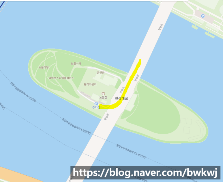 노들섬은 한강대교를 통해 갈 수 있다.