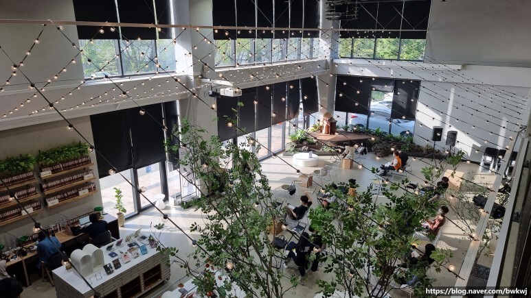깔끔하지만 나무들이 있어 편안한 느낌의 인테리어다.