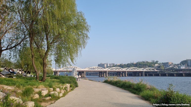 푸르른 버드나무와 한강변이 참 잘 어울린다.