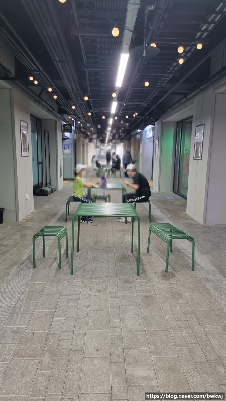 건물 통로마다 테이블도 비치되어 있어서