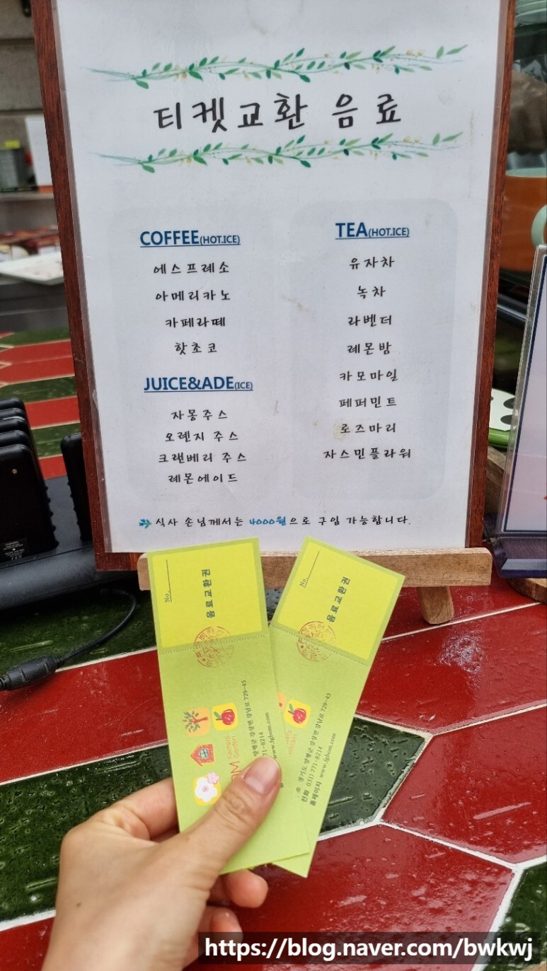 티켓은 봄 카페에 가서 음료로 교환할 수 있다.