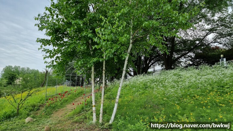 흰색 들꽃들, 노란색 들꽃들도 많이 있었다.