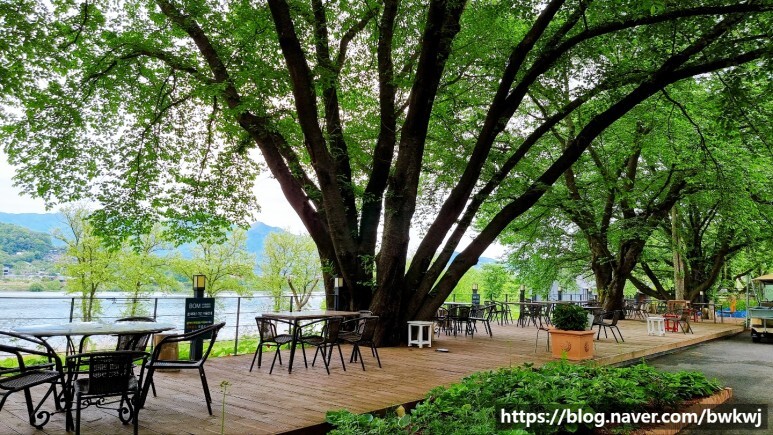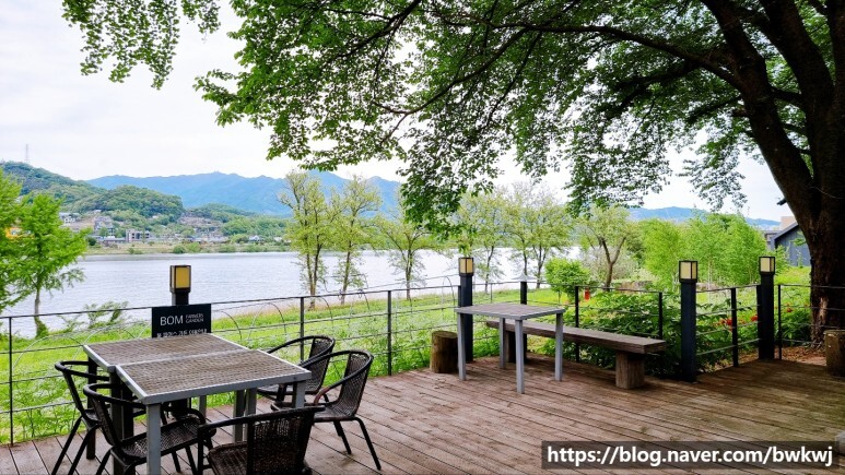 카페 밖으로 나오면 흐르는 강물을 바라보며 음료를 즐 길 수 있는 곳이 나온다.
