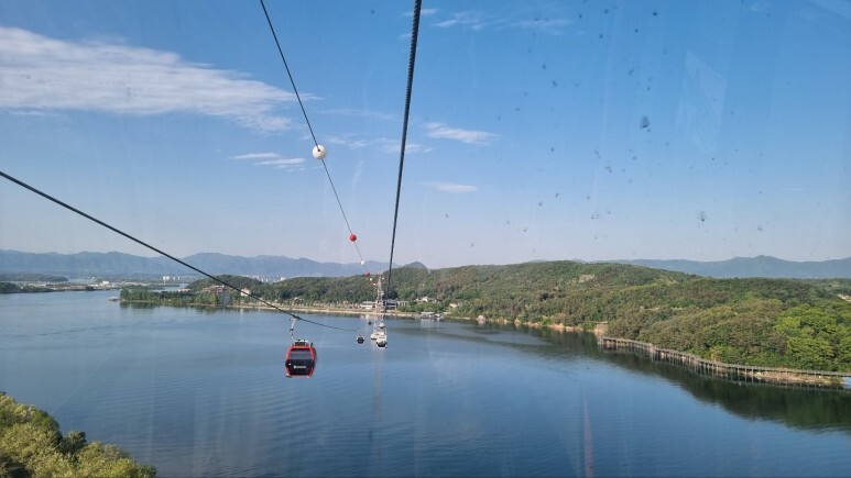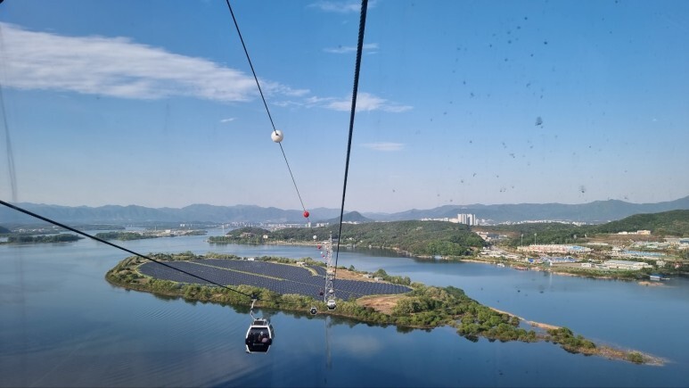 의암호 위로 멋진 풍경을 감상하며 케이블카를 즐길 수 있다.