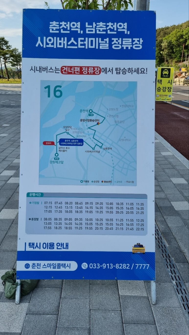 춘천역, 남춘천역에서 버스를 이용해서 삼악산 호수 케이블카를 타러 올 수 있는 방법이다.