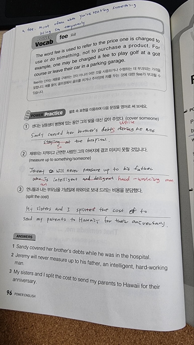 Power Practice에 나왔던 표현 중에 외워두고 싶은 것들