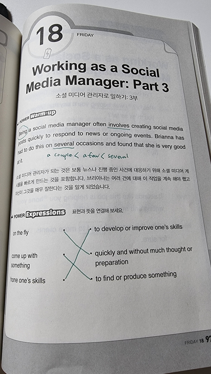 그렇게 지속성을 이어가려면, 힘든 날 하기 싫은날은 아예 안하는 것이 아니라 가볍게 배웠던 것을 들여다 보는 것만으로도 영어를 지속적으로 공부할 수 있다.